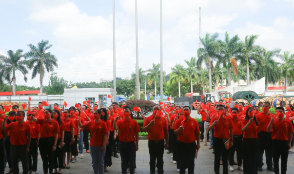 盛夏七月,热情似火!门徒娱乐公司已是党旗飘扬,处处洋溢着喜庆祥和的气氛。当日上午,身穿“中国红”T恤的党员等参会人员有序入场,列队数字“100”庆祝图案,表达对中国共产党的无限热爱。随着主持人一声令下,伴随着激昂雄壮的国歌声,护旗手奋力将鲜艳的五星红旗抛向天空,国旗迎着清晨第一缕阳光冉冉升起,全体人员庄重注视国旗,高唱国歌,脸上写满了骄傲与自豪。